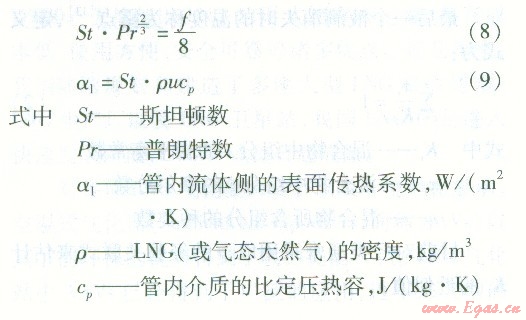 管內(nèi)LNG或氣態(tài)天然氣的對流換熱可以按照內(nèi)部強制對流換熱的實驗準則關(guān)聯(lián)式進行計算。