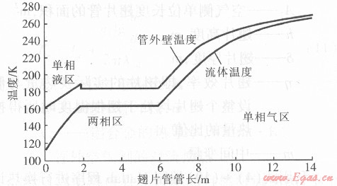 由上述可以看出,以往對AAVs的研究主要集中在空氣側(cè)特性的研究,而對LNG這一特定介質(zhì)的管內(nèi)氣化過程的換熱研究較少。本文對LNG空溫式氣化器單根翅片管的換熱進行計算,并分析管內(nèi)的相變吸熱特點。