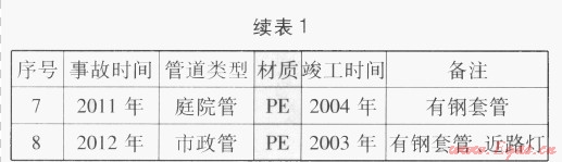 深圳地區(qū)2000年開始將PE管道應(yīng)用于埋地燃?xì)庵袎汗艿馈倪\(yùn)行情況來看,PE管道確實(shí)較好地解決了傳統(tǒng)金屬管道易腐蝕穿孔和接頭易泄漏等運(yùn)行維護(hù)的難題,顯著提高了燃?xì)廨斔偷目煽啃?,大大降低了管道的運(yùn)行維護(hù)費(fèi)用。但在近年運(yùn)行過程中,曾出現(xiàn)多起PE燃?xì)夤艿朗馨紫佒g而造成管道破壞泄漏的問題。