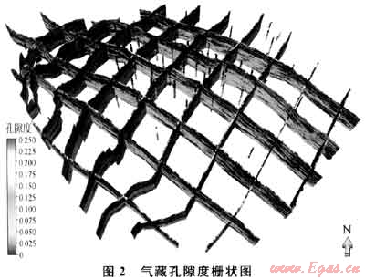 該氣藏孔隙度與含氣飽和度、滲透率相關(guān)系數(shù)較高,以孔隙度模型作為約束條件,采用同樣的建模方法建立含氣飽和度和滲透率模型。