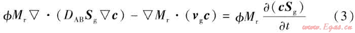 以惰性氣體代替天然氣作為部分墊層氣時,惰性氣體與天然氣之間會發(fā)生相互混合擴散。建立的氣體擴散連續(xù)性方程如下: