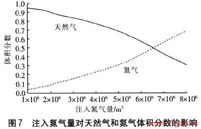 截至停止采氣時,儲氣庫剩余氣量為5875200m3,這部分氣體即為墊層氣,原儲氣庫的總氣量為10022400m3,則墊層氣量占總儲氣庫儲氣量的58.62%。而初始氮氣注入量為1036800m3,則注入氮氣量占墊層氣量的17.65%。