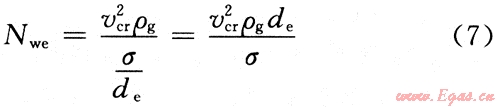 橢球體液滴韋伯?dāng)?shù)的臨界值為20~30。當(dāng)氣體流速大到足以使韋伯?dāng)?shù)達(dá)到臨界值時(shí),速度壓力起主要作用,液滴就容易破壞。取韋伯?dāng)?shù)為Nwe=30回代到式(7),解出最大液滴的直徑(de),即