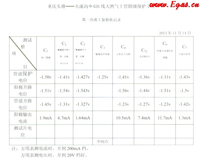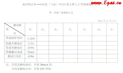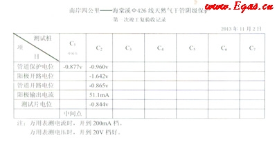 ①“陽極開路電位(v)<管道保護電位(v)”;