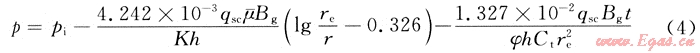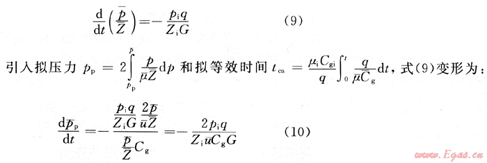 同時,對于圓形封閉邊界中心一口單相擬穩(wěn)定流動氣井,有