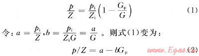 由此可知,對于定容封閉氣藏,視地層壓力(p/Z)與累計(jì)采氣量(Gp)為直線關(guān)系。因此,根據(jù)不同階段視地層壓力與相應(yīng)累計(jì)采氣量的回歸直線可求得氣井可動儲量: