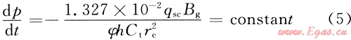 根據(jù)滲流力學(xué)理論,對于封閉氣藏中定產(chǎn)生產(chǎn)井,當(dāng)處于擬穩(wěn)定流動時,在任意一點(diǎn)處有: