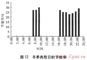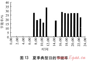 PEMFC建筑熱電聯(lián)供系統(tǒng)的節(jié)能率定義為滿足相同的電、熱水需求條件,PEMFC建筑熱電聯(lián)供系統(tǒng)比基準(zhǔn)方案節(jié)約燃料量與基準(zhǔn)方案消耗燃料最之比。PEMFC建筑熱電聯(lián)供系統(tǒng)在冬季工況和夏季工況的節(jié)能率見(jiàn)圖12、13。