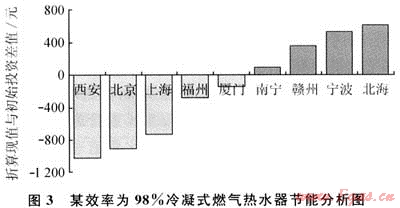 2005年起,國內(nèi)部分熱水器廠家開始生產(chǎn)銷售冷凝式熱水器,其中部分產(chǎn)品的熱工性能已達到或超過國外同類產(chǎn)品?,F(xiàn)采用凈現(xiàn)值法對冷凝式熱水器的節(jié)能情況做一簡略分析。