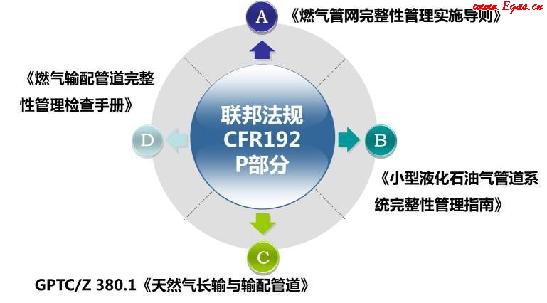 CFR第192章是管道輸送氣體聯(lián)邦安全標(biāo)準(zhǔn),對(duì)長(zhǎng)輸和輸配管道系統(tǒng)安全運(yùn)行作出了規(guī)定,其中P小節(jié)《SubpartP—GasDistributionPipelineIntegrityManagement》提出燃?xì)廨斉涔艿劳暾怨芾淼囊?,是美?guó)燃?xì)膺\(yùn)營(yíng)企業(yè)開(kāi)展完整性管理的綱領(lǐng)性文件。法規(guī)明確要求所有的城市燃?xì)膺\(yùn)營(yíng)企業(yè)應(yīng)當(dāng)在2011年8月2日開(kāi)始制定和實(shí)施管道完整性管理方案,并提出了燃?xì)廨斉涔艿老到y(tǒng)(包含液化石油氣系統(tǒng))開(kāi)展完整性管理的最低要求。