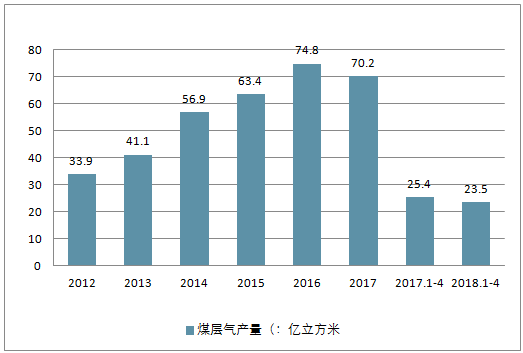 2012-2018年我國煤層氣歷年產(chǎn)量(單位:億立方米)