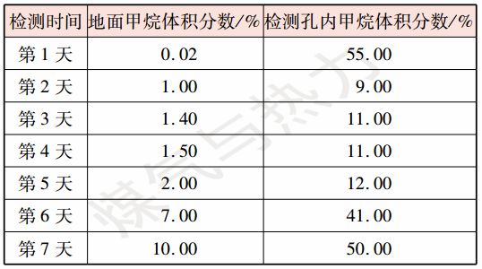 表2 F管道地面與孔內(nèi)甲烷體積分?jǐn)?shù)