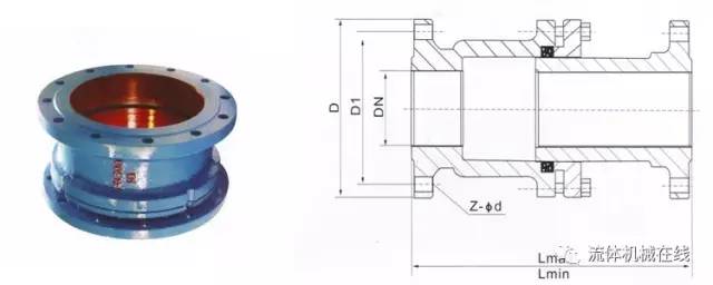 由能夠作軸向相對(duì)運(yùn)動(dòng)的內(nèi)外套管組成(下圖[套管伸縮節(jié)])。內(nèi)外套管之間采用填料函密封。使用時(shí)保持兩端管子在一條軸線上移動(dòng)。在伸縮節(jié)的兩端裝設(shè)導(dǎo)向支架。它的優(yōu)點(diǎn)是對(duì)流體的流動(dòng)摩擦阻力小,結(jié)構(gòu)緊湊;缺點(diǎn)是密封性較差,對(duì)固定支架推力較大。套管伸縮節(jié)主要用于水管道和低壓蒸汽管道。