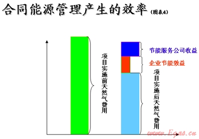 從上述圖示分析,通過節(jié)能服務公司的運作,一是能促進節(jié)能項目的實施,幫助克服由于實施項目的可能風險所造成的企業(yè)對實施項目的保留態(tài)度。二是輕輕松實施節(jié)能:幫助克服節(jié)能項目經(jīng)濟效益不明顯,占用企業(yè)太多精力的擔心和疑慮。三是減輕節(jié)能項目融資壓力:節(jié)能服務公司通過同類項目的開發(fā)和大量“復制”提高項目運做能力,降低項目成本;并且節(jié)能項目的投資來自節(jié)能項目本身產(chǎn)生的節(jié)能效益,減輕了企業(yè)實施節(jié)能項目的融資壓力。