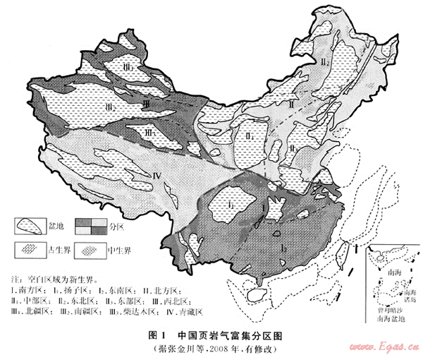 作為源巖排烴殘余的主要產(chǎn)物,頁巖氣的存在具有廣泛意義。頁巖氣是美國大規(guī)模經(jīng)濟性勘探開發(fā)的三大非常規(guī)天然氣類型(根緣氣、頁巖氣、煤層氣)之一,近年來得到了空前的發(fā)展,其頁巖氣年產(chǎn)量相當于目前我國各類天然氣年產(chǎn)量的總和。作為非常規(guī)油氣資源的一種[1],頁巖氣聚集機理特殊,富集條件多樣,它使得一大批不曾具備常規(guī)油氣成藏條件的泥頁巖重新變得具有直接勘探意義。高含有機碳泥頁巖在中國廣泛分布,頁巖氣也因此成為值得高度重視且具有廣泛而重要勘探開發(fā)意義的非常規(guī)油氣資源類型。