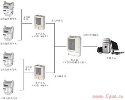 IC卡無線遠(yuǎn)傳燃?xì)獗淼臄?shù)據(jù)可由無線方式自動上傳給樓宇主機,樓宇主機通過無線方式把數(shù)據(jù)傳給集中器,集中器通過GPRS/GSM網(wǎng)絡(luò)把數(shù)據(jù)傳給燃?xì)夤镜腎C卡無線遠(yuǎn)程抄表系統(tǒng)中,由此實現(xiàn)在管理中心自動抄錄所有的燃?xì)獗頂?shù)據(jù)。