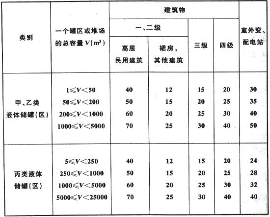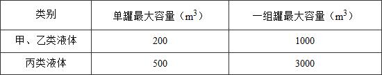 注:1當甲、乙類液體儲罐和丙類液體儲罐布置在同一儲罐區(qū)時,罐區(qū)的總容量可按1m3甲、乙類液體相當于5m3丙類液體折算。