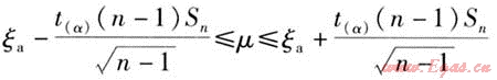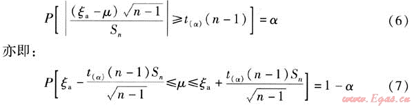 根據(jù)數(shù)理統(tǒng)計(jì)定理,取自正態(tài)總體的子樣ζ,其子樣均值ζa、子樣方差Sn2、總體均值μ、總體標(biāo)準(zhǔn)差Sn構(gòu)成統(tǒng)計(jì)量A,A是自由度為n-1的t變量,它服從t(n-1)分布。