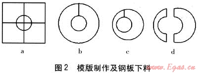 ② 如圖2b所示,用剪刀將上端剪開,并將Ø159的圓剪下,把外圍大致剪成圓形。