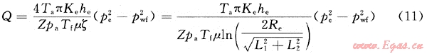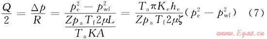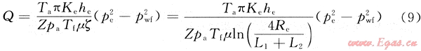 ,將其代入式(7)可得壓裂火山巖氣井單裂縫不對稱產能模型為: