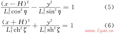 式中:ξ、η為與橢圓族中任意橢圓大小有關的特征量;chξ為雙曲余弦函數;shξ為雙曲正弦函數。