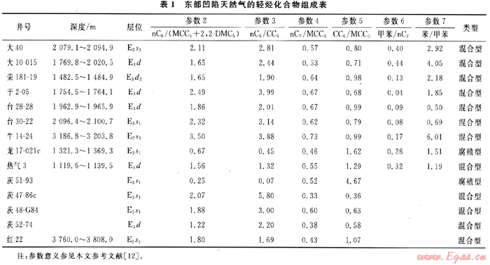 天然氣生成理論由生物氣、熱降解氣、裂解氣三階段發(fā)展到多階連續(xù),由油型氣一元論發(fā)展到油型氣、煤成氣、無機(jī)氣三元論,勘探方法也為多學(xué)科綜合勘探方法[1]。而前人研究認(rèn)為,東部凹陷天然氣主要為富烴、貧H2S、低N2和C02的天然氣,含有微量的汞及He、Ar等稀有氣體組分,多為伴生氣,不但有油型氣,還有生物-熱催化過渡帶氣、生物氣、煤型氣以及無機(jī)氣和混合氣[2~4]。孟衛(wèi)工[5]認(rèn)為該區(qū)存在深源氣的混入,造成天然氣中重?zé)N碳同位素異常,開拓了天然氣的勘探領(lǐng)域。筆者從天然氣成因類型分析入手,對該區(qū)天然氣分布規(guī)律進(jìn)行重新認(rèn)識,為下一步深化天然氣的勘探開發(fā)提供參考。