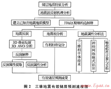 其次,重點區(qū)實施三維地震、強化儲層預測。在二維地震選區(qū)基礎(chǔ)上,優(yōu)選潛力區(qū)開展三維地震。充分利用三維資料信息量大、地質(zhì)內(nèi)涵豐富的優(yōu)勢,以主河道帶預測為基礎(chǔ),以有效儲層預測為核心,以疊前技術(shù)為主,以疊后技術(shù)為輔;進行主河道帶預測、儲層及含氣性預測,并利用三維可視化手段對儲層及有效儲層進行精細刻畫;最后通過綜合評價優(yōu)選高產(chǎn)富集分布區(qū)(圖2)。