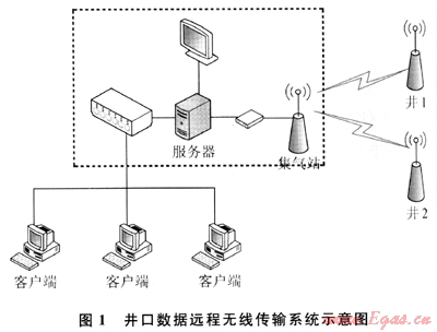 遠(yuǎn)程測(cè)試技術(shù)的核心主要在于兩個(gè)方面:①依靠井口數(shù)據(jù)遠(yuǎn)傳技術(shù),在井口安裝壓力變送器對(duì)套壓進(jìn)行數(shù)據(jù)采集與傳輸;②建立適合蘇里格氣田實(shí)際的壓力折算模型和計(jì)算系統(tǒng),進(jìn)行試井解釋和分析。圖2是已經(jīng)投入使用的井口數(shù)據(jù)傳輸系統(tǒng)。