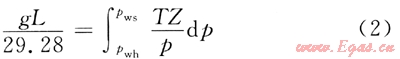 利用井口壓力折算井底壓力是一種成熟方法。按照井筒內(nèi)的能量守恒定律,純氣井靜氣柱條件下靜止氣體壓力隨井深變化關(guān)系符合如下方程[3~6]: