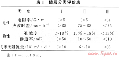 利用三維地震、巖心、區(qū)域?qū)有騽澐值荣Y料,結(jié)合地質(zhì)、鉆井、測井資料,確定了氣藏基本骨架;采用Strata井約束反演技術(shù),落實(shí)了儲層砂體的空間展布規(guī)律;對儲層進(jìn)行了分類評價(jià)(表1),為布井、鉆井和氣井合理配產(chǎn)奠定了基礎(chǔ)[3]。