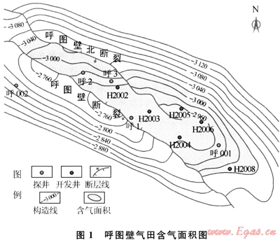 1996年,呼2井射開紫泥泉子組獲日產(chǎn)天然氣78.3×104m3、凝析油18.82m3的高產(chǎn)油氣流,從而發(fā)現(xiàn)了呼圖壁氣田。于1998年10月投入試采,2000年全面投入開發(fā),共有氣井7口,動用含氣面積15.2km2,動用天然氣地質(zhì)儲量126.12×108m3。