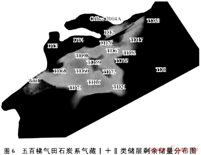 1) 精細(xì)氣藏描述技術(shù)。形成地震儲層預(yù)測技術(shù)、裂縫精細(xì)表征技術(shù)、氣藏精細(xì)地質(zhì)建模技術(shù)、氣藏開發(fā)動態(tài)監(jiān)測技術(shù)、精細(xì)氣藏數(shù)值模擬技術(shù)、剩余儲量描述技術(shù)、治水挖潛增效開發(fā)技術(shù)等7個精細(xì)氣藏描述主體技術(shù)系列。老氣田精細(xì)氣藏描述成為重新認(rèn)識和評價老氣田,弄清剩余儲量分布,明確挖潛目標(biāo),制訂合理開發(fā)調(diào)整方案的重要手段。通過對五百梯氣田石炭系(圖6)等11個氣藏進(jìn)行精細(xì)描述,核增地質(zhì)儲量317.16×108m3,增加可采儲量173.41×108m3,延長穩(wěn)產(chǎn)年限2~5a,提高采收率5.8%~12.5%,效果顯著。