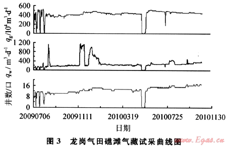 針對龍崗地區(qū)礁灘氣藏高溫、高壓、高含硫特點開展的開發(fā)技術(shù)攻關(guān)取得重要進(jìn)展,有力支撐了龍崗氣田試采工程建設(shè)和投產(chǎn)。開發(fā)地質(zhì)綜合評價研究深化了對龍崗氣田礁灘氣藏儲層非均質(zhì)性、氣井產(chǎn)能、氣田水分布特征的認(rèn)識,為試采區(qū)合理開采奠定了基礎(chǔ);形成了分層酸化合層開采的完井管柱優(yōu)化技術(shù)和150℃高溫凝膠酸和轉(zhuǎn)向酸酸液體系,使超深、高溫、高壓、高含硫氣井完井與儲層改造配套技術(shù)不斷完善,支撐了龍崗氣田試采區(qū)單井日產(chǎn)量最高達(dá)80×104m3氣井的產(chǎn)能建設(shè);建立了井筒安全屏障及實際工況油套管柱安全分析技術(shù),確保了投產(chǎn)的高含硫氣井安全可靠生產(chǎn);形成和完善了酸性天然氣腐蝕與防腐配套技術(shù),解決了高含硫氣藏井下與地面系統(tǒng)整體防腐問題;高含硫天然氣凈化技術(shù)的配套和完善,支持建成了國內(nèi)單系列最大規(guī)模的脫硫、硫磺回收和尾氣處理裝置,為龍崗氣田試采工程一次投產(chǎn)成功提供了有力保障。龍崗氣田礁灘氣藏投產(chǎn)氣井井均日產(chǎn)氣量達(dá)到25×104m3,成為四川盆地有史以來單井日產(chǎn)量最高的氣田(圖3)。
