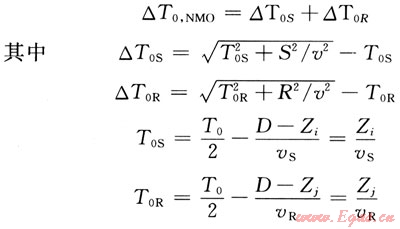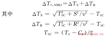 式中△TS和△TR為炮、檢點(diǎn)正常時(shí)差;S、R為炮點(diǎn)和檢波點(diǎn)到CMP點(diǎn)水平距離;口為動校正速度;T0C為CMP點(diǎn)的丁T0時(shí)間;T0為基準(zhǔn)面時(shí)間。