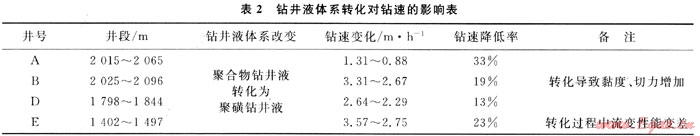 1.2 鉆井液體系轉(zhuǎn)化對鉆速的影響