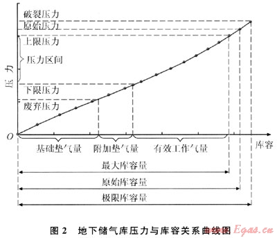 氣庫運行壓力與氣庫庫容量互為因果關系。氣庫運行壓力區(qū)間以保證實現氣庫的工作氣量為目的。氣庫下限壓力以保證氣庫最低調峰能力和維持單井最低生產能力為目的;氣庫上限壓力以不破壞地層巖石結構,保證氣庫封閉性為目的;上下限壓力還與單井注采氣能力、井數、調峰氣量與注氣量、工作氣量、經濟效益、井口外輸氣壓力與注氣壓縮機等級、注采氣設施的匹配性有關,需要地下、井筒和地面系統(tǒng)協同優(yōu)化選定。