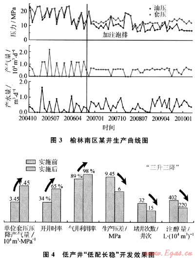 2) 通過對低產(chǎn)氣井攜液能力及生產(chǎn)規(guī)律研究,優(yōu)化泡沫排水、套管注醇、井下節(jié)流等配套工藝技術(shù)措施,提高了氣井連續(xù)生產(chǎn)能力,進一步發(fā)揮氣井產(chǎn)能。