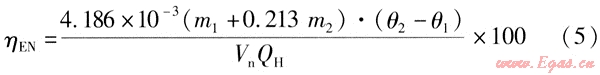 式中ηEN——按照EN 30的方法測試的熱效率,%