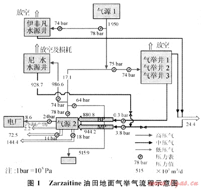 1) 阿爾及利亞Zarzaitine油田氣舉采油工藝技術(shù)先進(jìn)可靠,地面供氣氣源雙套系統(tǒng),保證了該油田長(zhǎng)期穩(wěn)定氣舉采油生產(chǎn)。
