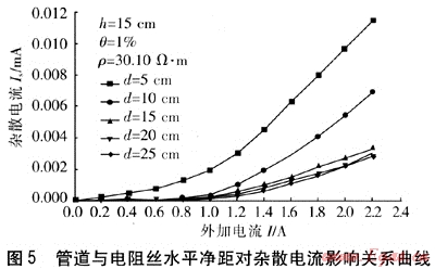④ 管道與電阻絲水平凈距對雜散電流的影響