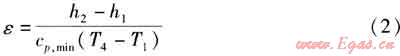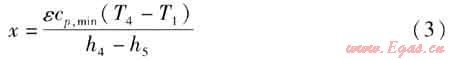 由式(3)可知再液化比x與熱交換器效率ε成正比。原料流的比定壓熱容通常小于回流的比定壓熱容,因?yàn)榇蠖鄶?shù)原料流只承載著顯熱,而回流還承載著相變過程中的潛熱。原料流的比定壓熱容大于回流的比定壓熱容只會發(fā)生在再液化比很小的情況下,而這種情況與重?zé)N去除工藝的目的相矛盾。因此原料流的比定壓熱容為最小比定壓熱容。
