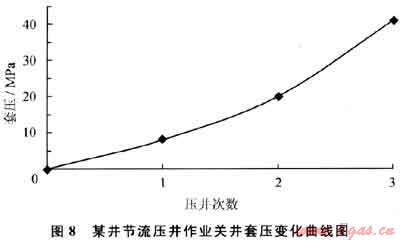 2) 用泥漿泵環(huán)空擠注密度1.20g/cm3的鉆井液28m3,套壓由22MPa降至18MPa。