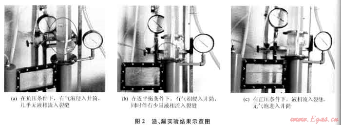 用清水加CMC為液相,氮氣為氣相,實驗觀察在鉆遇裂縫性儲層時,氣、液兩相的溢、漏現(xiàn)象。實驗結(jié)果如圖2所示。