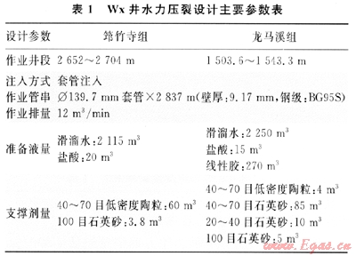2.1 Wx井壓裂設(shè)計(jì)參數(shù)