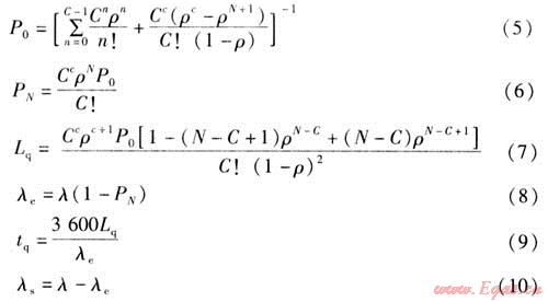 式中n——系統(tǒng)中的顧客數(shù),個