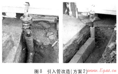 我們抽取大慶東、西城區(qū)內(nèi)逾10個變形嚴重的燃氣引入管進行了試驗研究,在2009年冬至2010年春土壤凍脹時間段對試驗對象進行實時觀測、數(shù)據(jù)采集、對比分析。試驗結(jié)果表明,經(jīng)過冬春兩季的運行檢驗,兩套試驗方案均很好地解決了燃氣引入管發(fā)生位移或變形的問題。