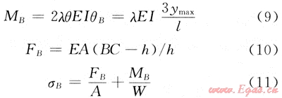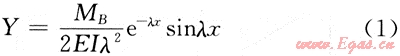式中:;EI為彎曲剛度;K為彈性地基的彈簧常數(shù);MB為B點(diǎn)彎矩。