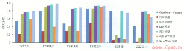 圖2 各種模型實測橫波與預測橫波相關系數(shù)圖