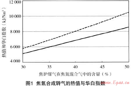 在實(shí)際應(yīng)用中,當(dāng)利用氮?dú)馓娲郀t煤氣與焦?fàn)t煤氣合成轉(zhuǎn)爐煤氣時(shí),由于其能夠互換的范圍較小,難于實(shí)現(xiàn)各參數(shù)的精確控制,為保證安全及穩(wěn)定運(yùn)行,可適當(dāng)提高焦?fàn)t煤氣在混合氣中的比例,以保證不致形成脫火現(xiàn)象。