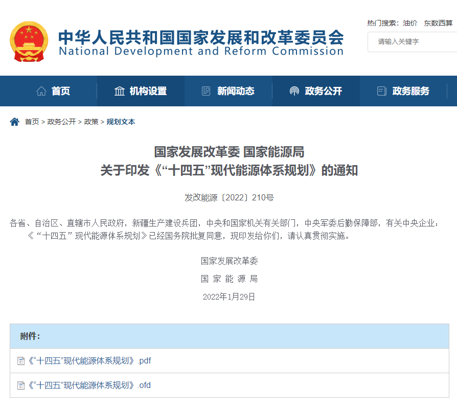 國家發(fā)展改革委 國家能源局:《“十四五”現(xiàn)代能源體系規(guī)劃》